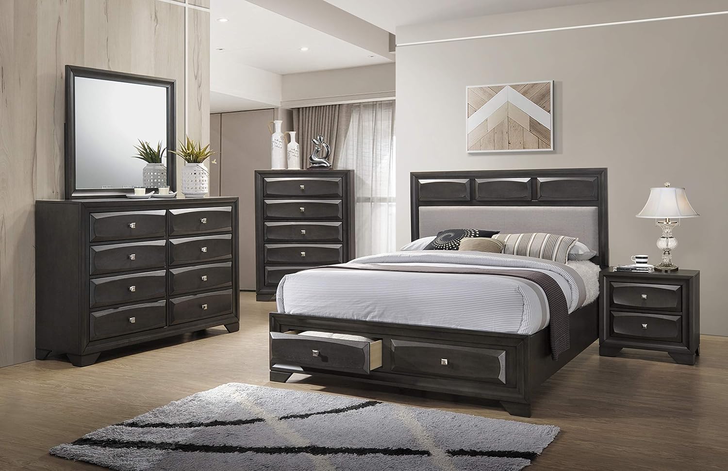 Mollai Collection Grey King Queen Complete Set Headboard Footboard Rails Nightstand Queen Amazon Ca Home Kitchen from images-na.ssl-images-amazon.com