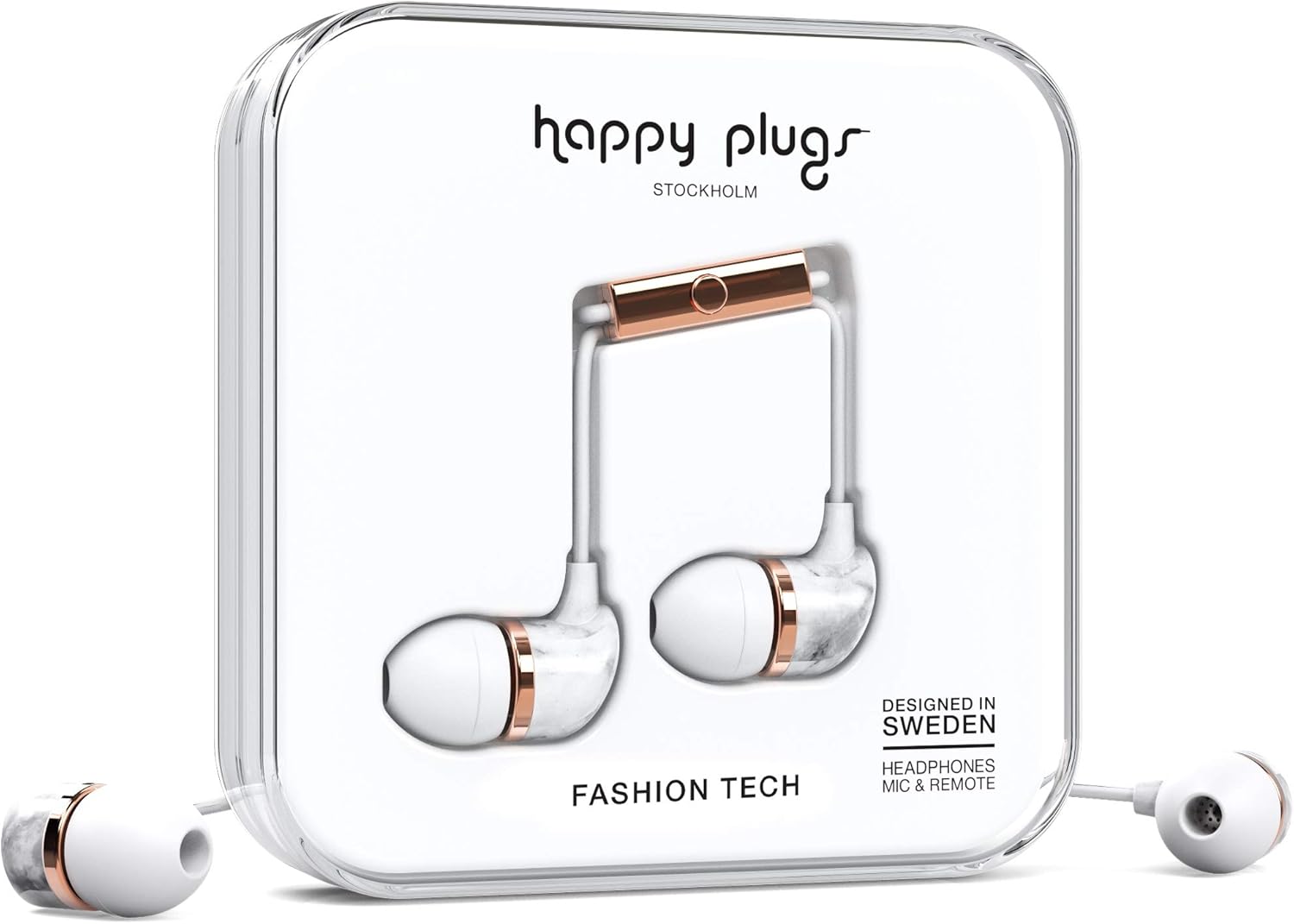 Happy plugs earbud white marble rose.