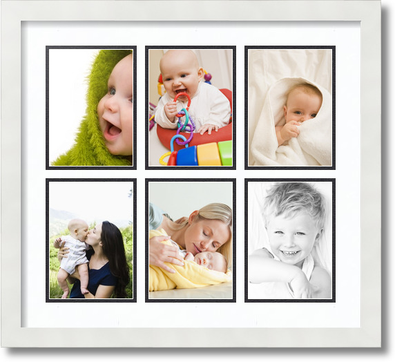 This 9x32 collage picture frame features (6) 5x7 openings, a 1 mat border, and can hang vertically or horizontally.