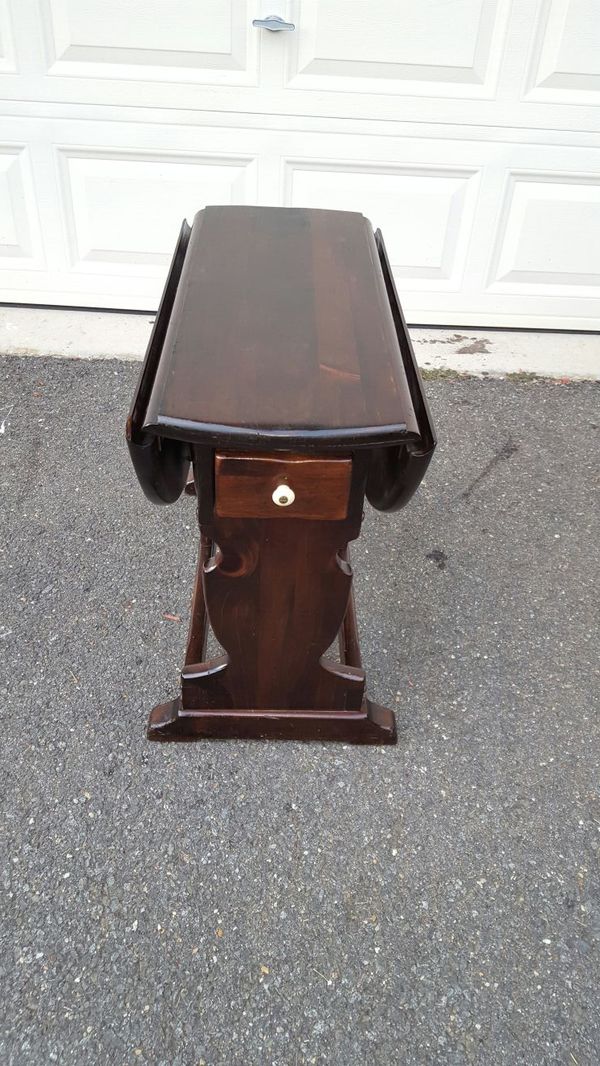Ethan Allen Antiqued Pine Old Tavern 38 Drop Leaf Pembroke Accent End Table 12 8054 High End Used Furniture from highendusedfurniture.com